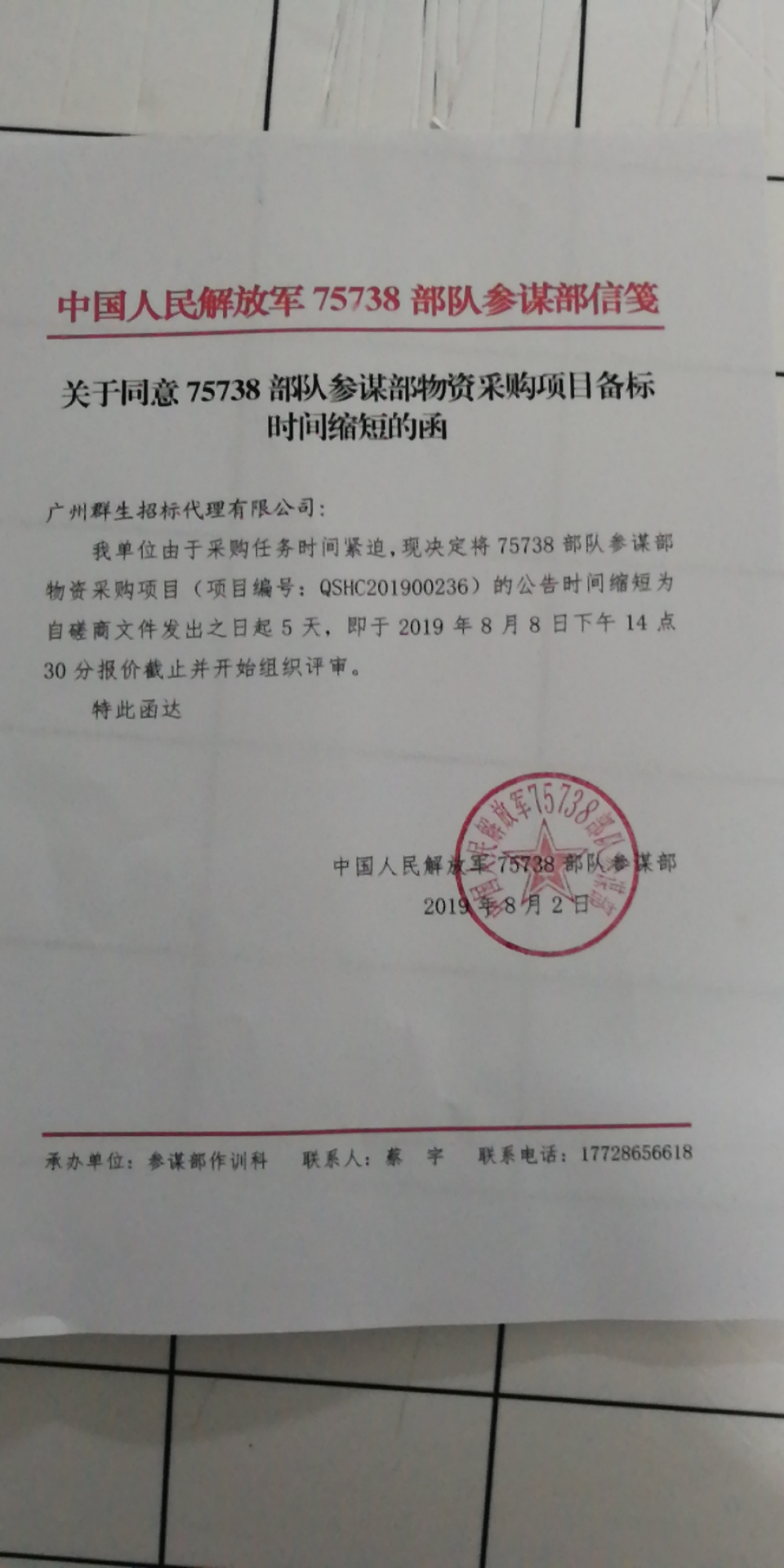 75738部隊參謀部物資采購項目競爭性磋商采購公告